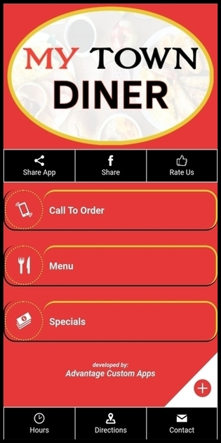 Features Include: Custom Branded Design, Call To Order, Directions & Hours, Menu, Daily Specials, Share App (SMS +), Social Media Links, Website, Facebook Share, Rate Us/Reputation Management, Contact/Email, Custom QR Code & Share